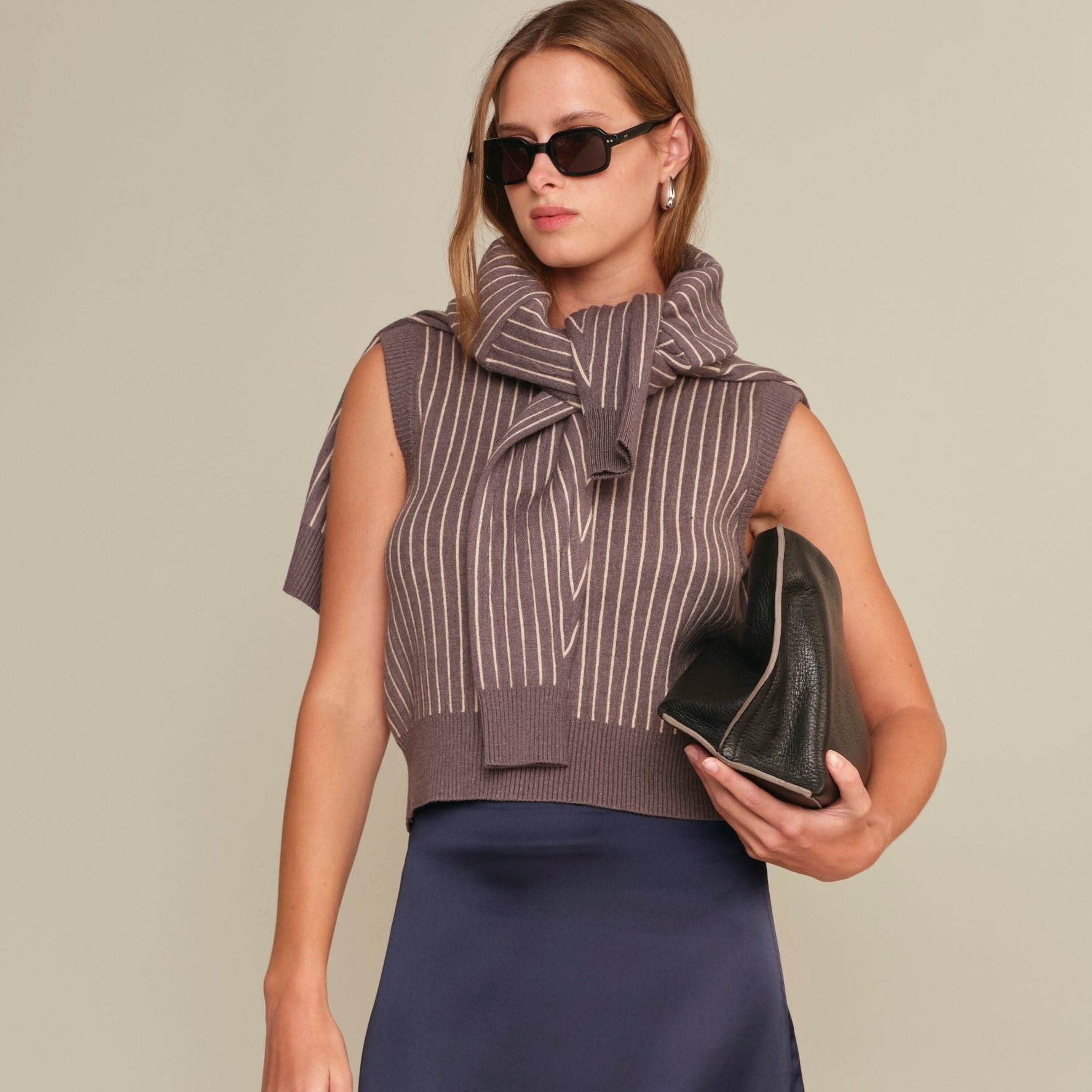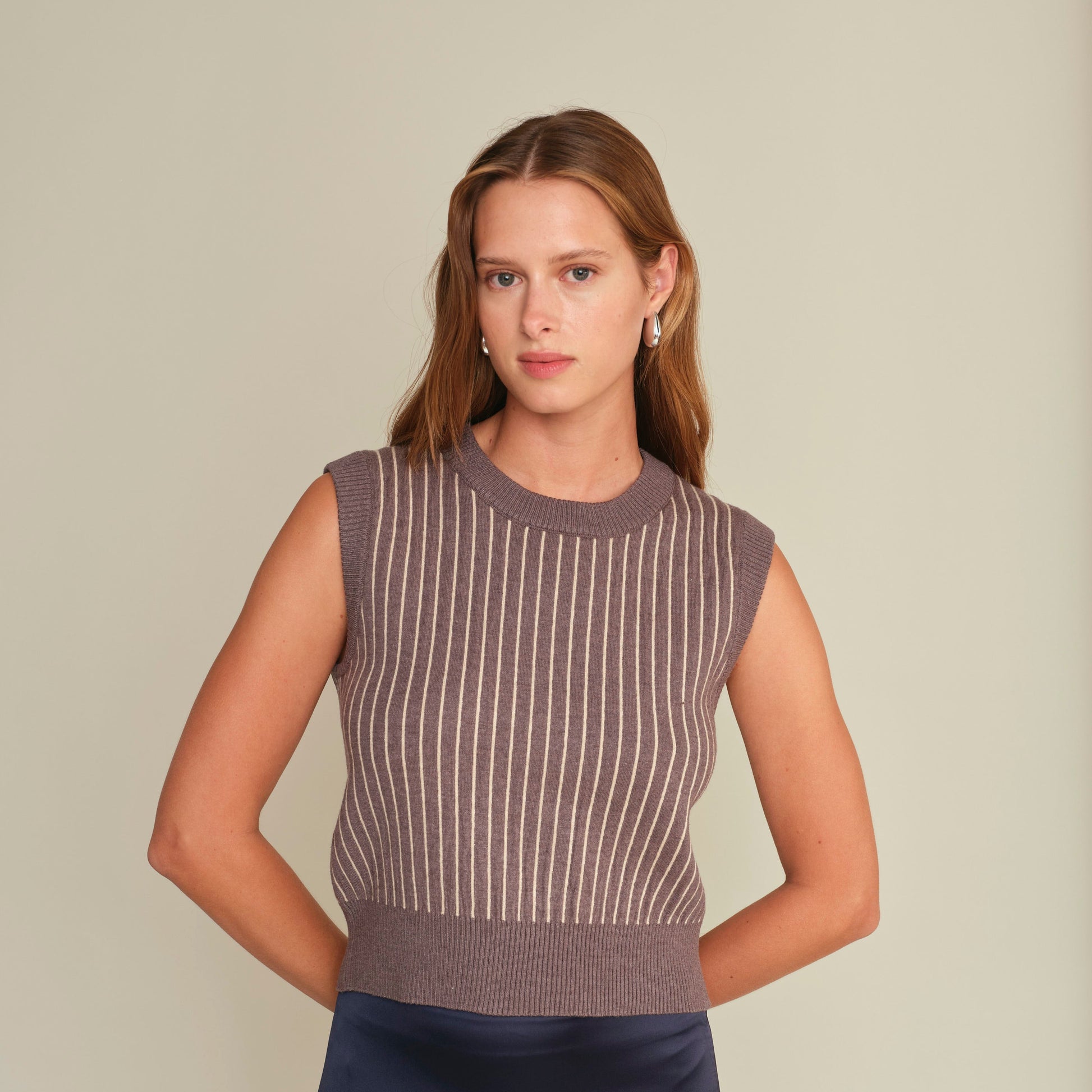 The Bruce Knit Vest offers a stylish and comfortable option for those looking to enhance their wardrobe with versatile knitwear. Crafted from a viscose blend, this vest features a relaxed fit and a classic round neckline. The striped pattern adds a touch of sophistication, making it a perfect piece for layering.