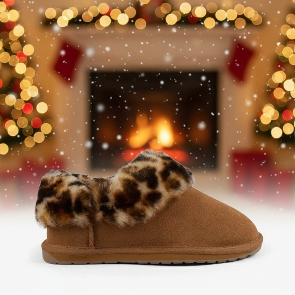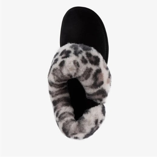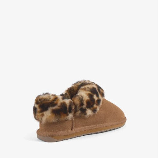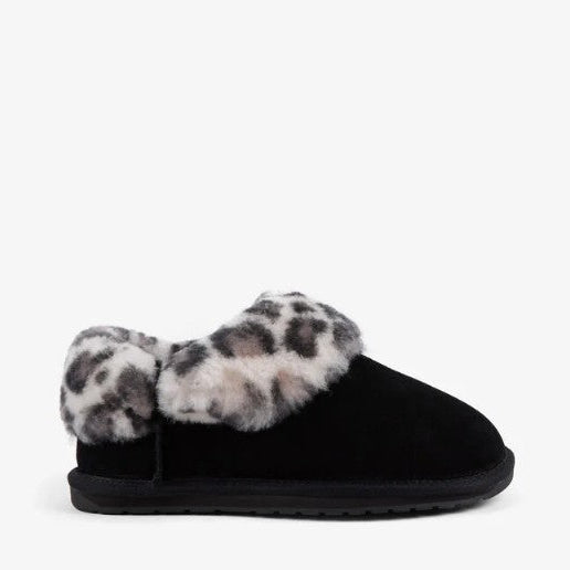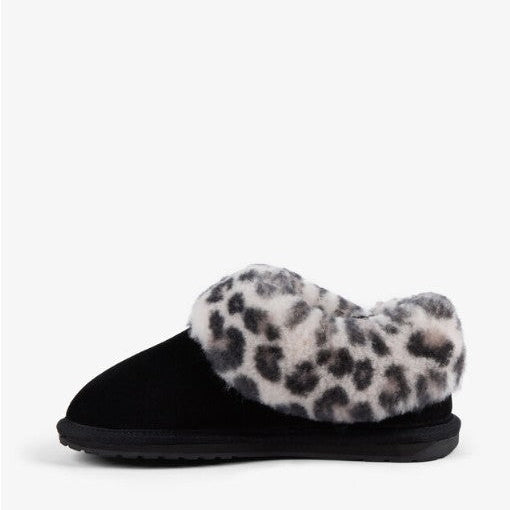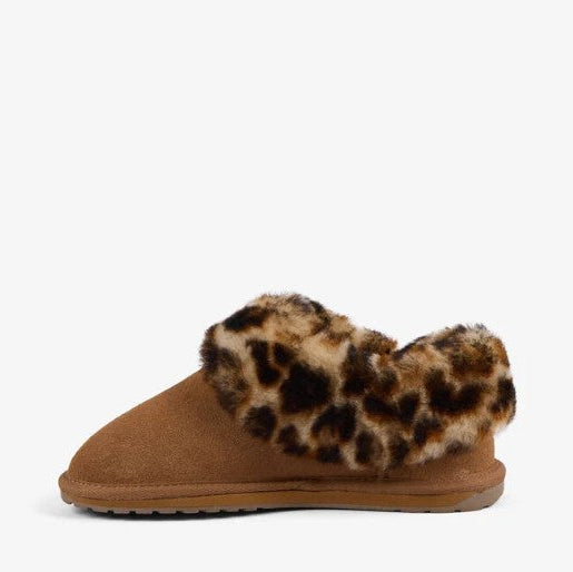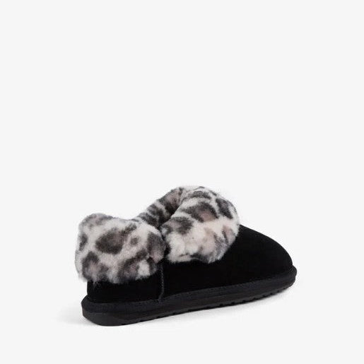 EMU's Baia Bow combines audacious style with uncompromising comfort. Crafted from premium Australian sheepskin with a striking leopard-print collar, this slipper refuses to play it safe. The soft suede upper delivers that coveted luxury-lounge feel, while the exposed cuff and secure fit keep you grounded through hours of lounging. Bold, plush, and unapologetically confident—your downtime just got a serious style upgrade.