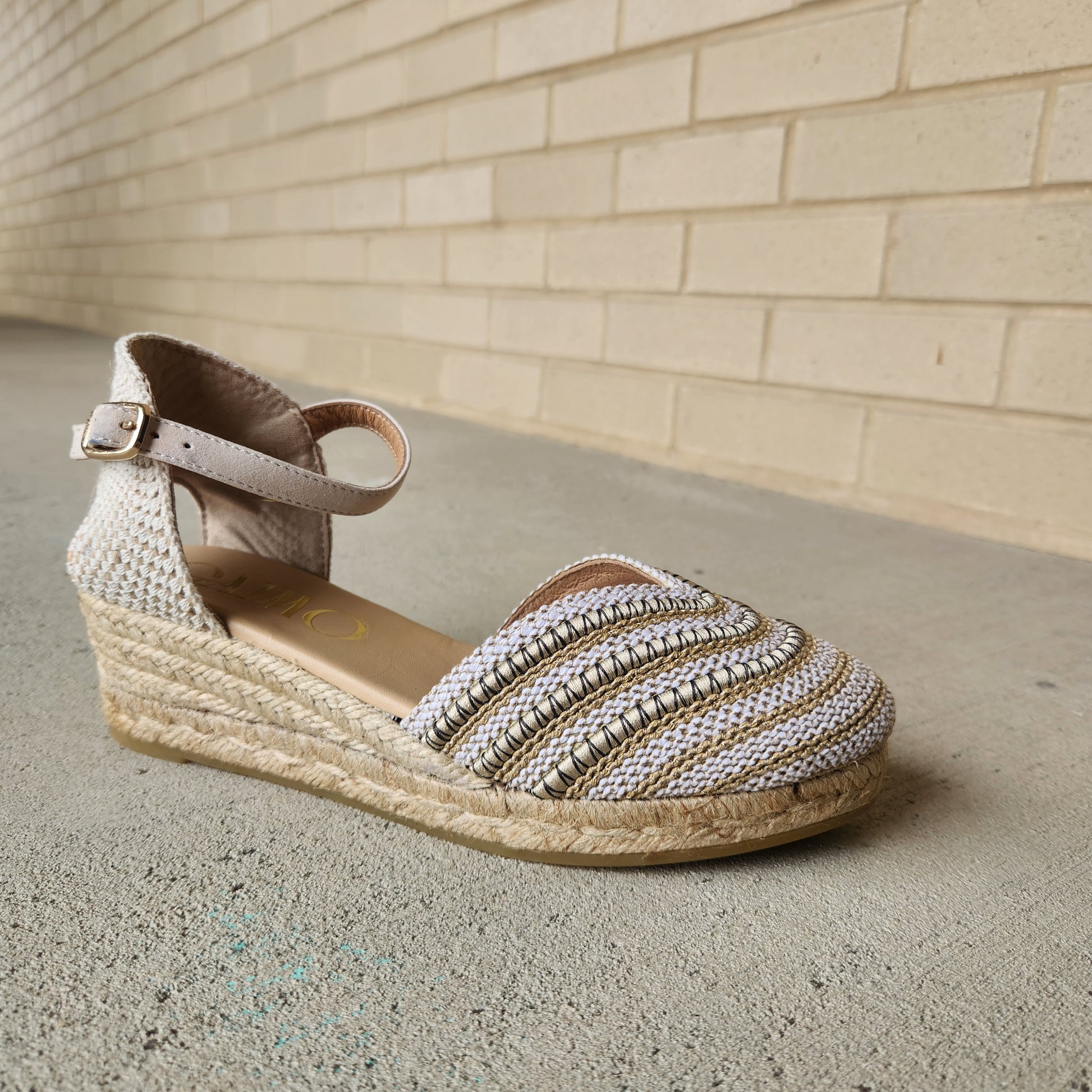 This Gaimo espadrille blends classic Spanish craftsmanship with an easy, modern feel. Designed with a woven textile upper and traditional jute-wrapped sole, it delivers that effortless summer look customers reach for year after year. The closed-toe silhouette offers a bit more coverage, while the adjustable ankle strap provides a secure, customized fit. Lightweight and breathable, it’s an ideal warm-weather option that works just as well for everyday wear as it does for travel or casual outings.