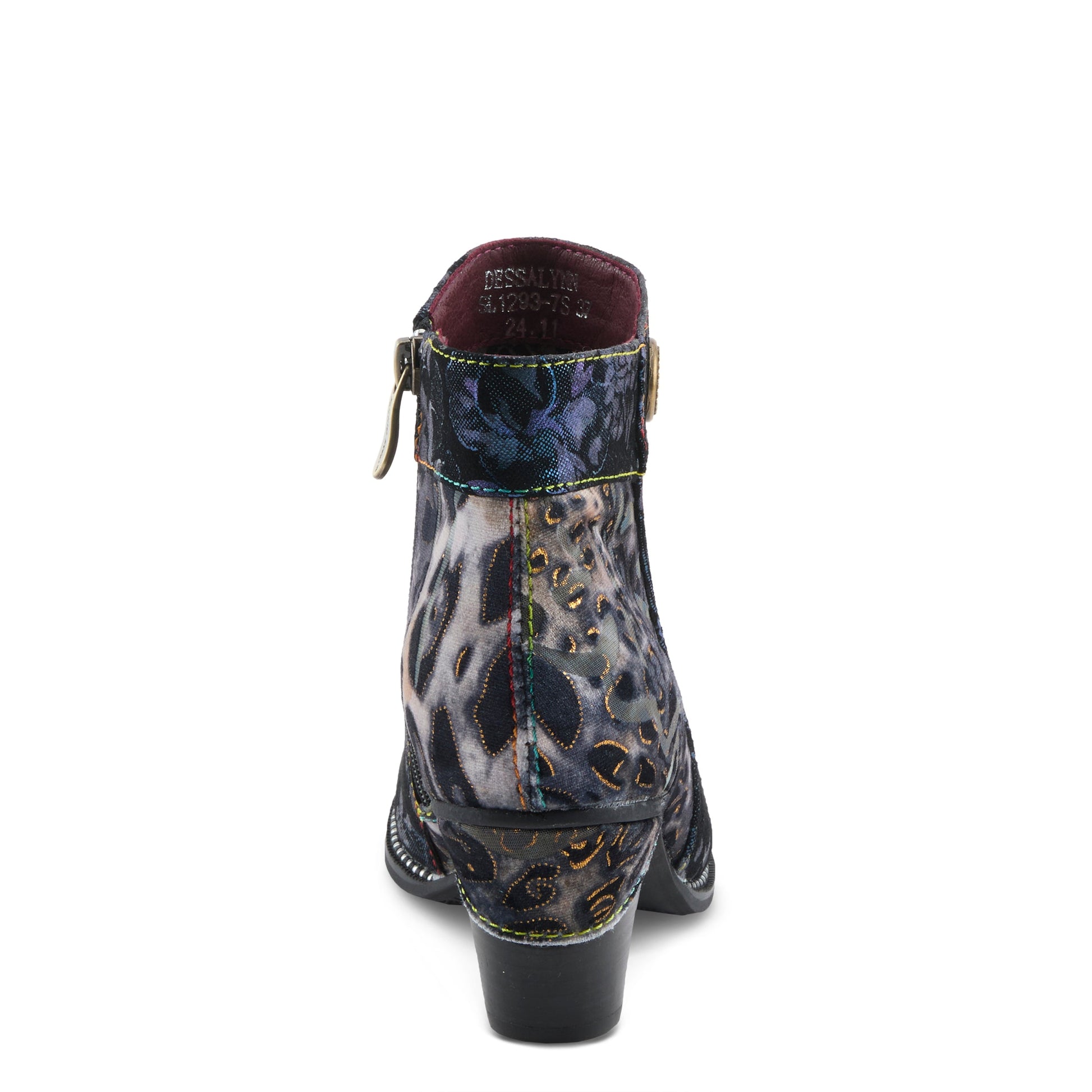 Step into artistry and elegance with the L’Artiste Dessalynn Bootie. This mixed‑media beauty blends floral‑printed suede and animal‑print velvet for a dramatic, textured effect. A side zipper ensures easy wear, while decorative button detailing adds boutique charm. Inside, the plush padded footbed cushions every step with comfort. Standing on a 2¼″ (2.25") sculpted mid‑heel, this bootie provides lift with balance and wearability — perfect for pairing with dresses, skirts, or tailored pants for a day-to-night look.