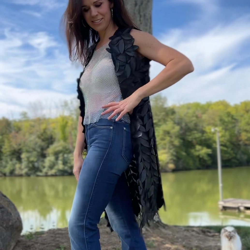 Discover the elegance of Ellyndale's Faux Leather Laser Cut Long Jacket. This sophisticated piece combines style and comfort, perfect for adding a touch of luxury to any wardrobe. Designed with a unique laser cut pattern, this jacket offers a modern twist on classic outerwear.