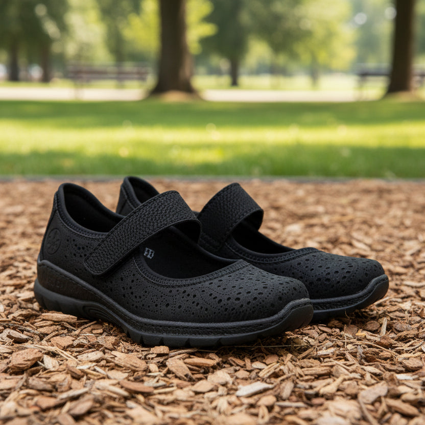 The RIEKER N4299 Mary Jane is your ticket to effortless style that actually feels amazing. Wrapped in sleek black leather, this shoe pairs a charming vintage silhouette with modern comfort tech—think cushioned insoles and a flexible sole that moves with you. The signature Mary Jane strap keeps everything snug without the fuss, while the polished finish plays nice with literally any outfit. Perfect for anyone who believes shoes should be fun, functional, and fabulous all at once.