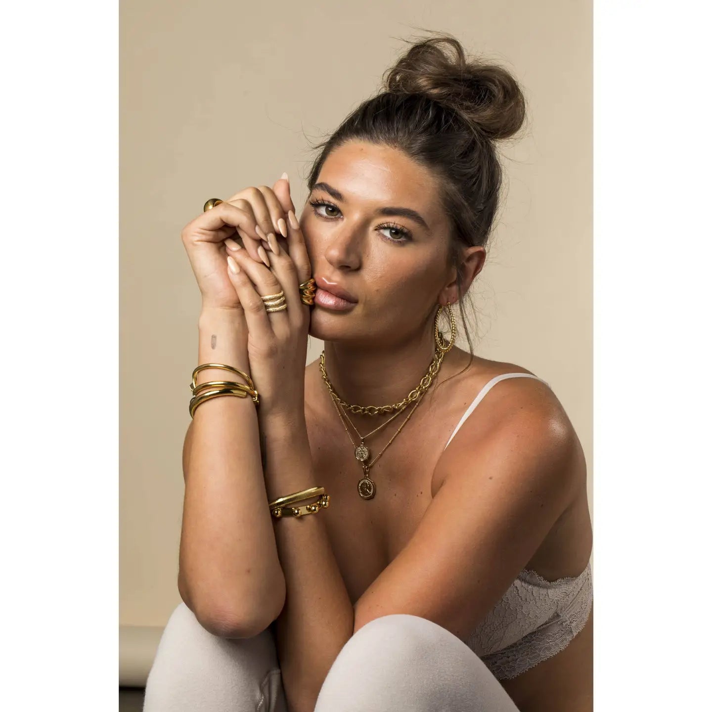 Discover the daring elegance of the Sahira - Emperor pendant, crafted in 18k gold-filled metal. This antique-style coin pendant features the right-facing bust of Emperor Franz Joseph I, encircled by the Latin inscription FRANC IOS I D G AVSTRIAE IMPERATOR. The reverse showcases the imperial double-headed eagle alongside the historic inscriptions HVNGAR BOHEM GAL LOD ILL REX. A bold statement piece that channels timeless power and heritage with every detail.