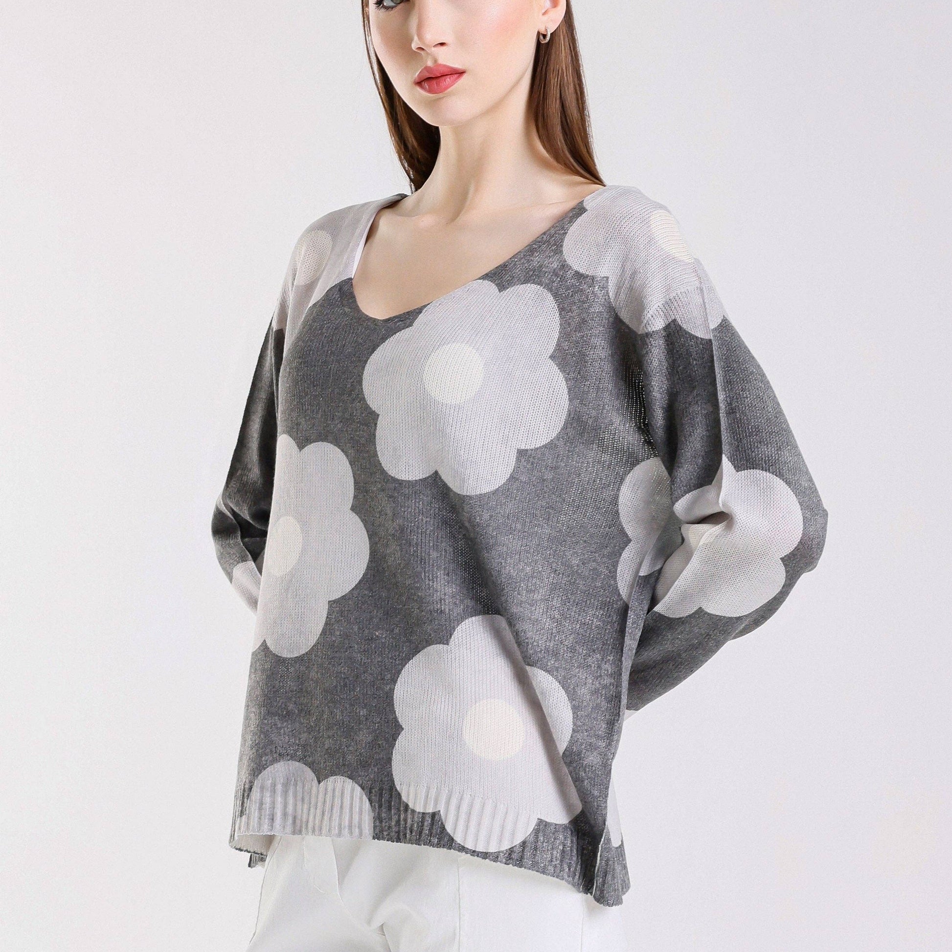 TINA STEHPHENS ITALY Hannah Daisy Light Sweater Dark Grey