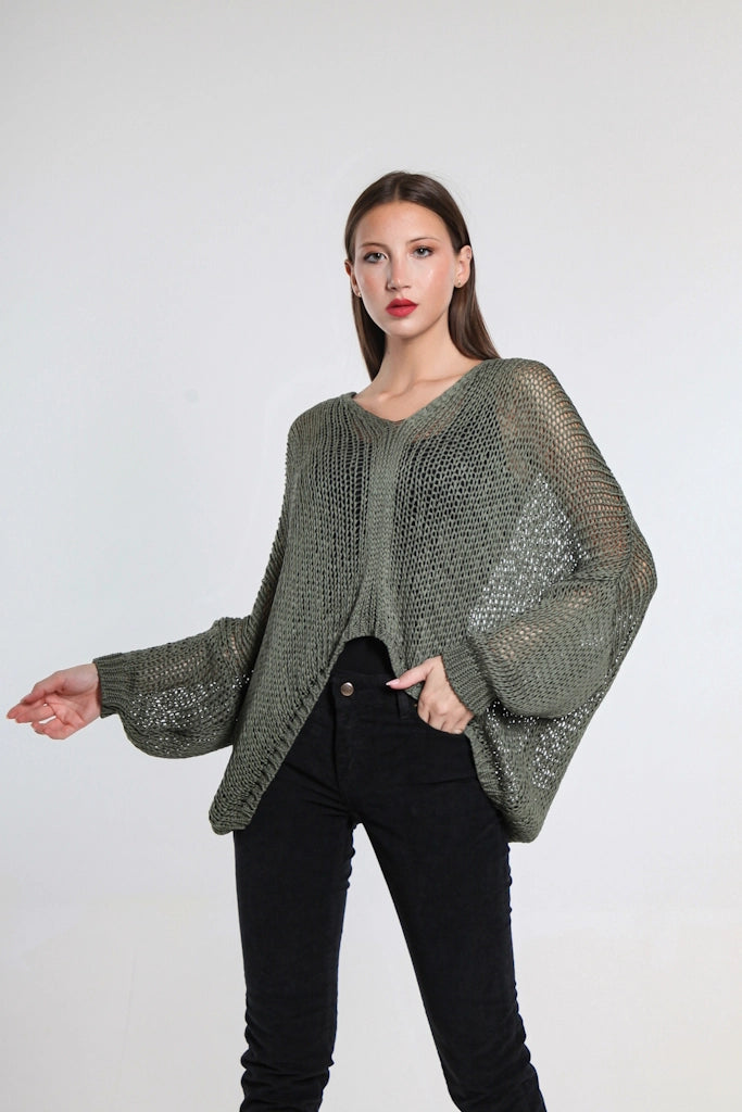 Elevate your wardrobe with this stunning Italian topper, designed to drape effortlessly over tanks, tees, or dresses. Its breathable open weave ensures comfort, while the blousant butterfly sleeves add a refined, dramatic flair. The longer sides and flattering center seam create a silhouette that is both elegant and flattering. Crafted to fit sizes 2 to 12/14, this piece offers a sophisticated, versatile cover-up that transitions seamlessly from day to evening wear. Made in Italy and easy to care for, it’s a chic addition to any collection.